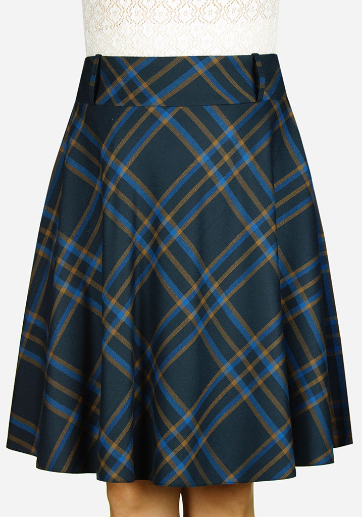 Юбка полусолнцем из костюмной ткани клетка застежка на молнии.