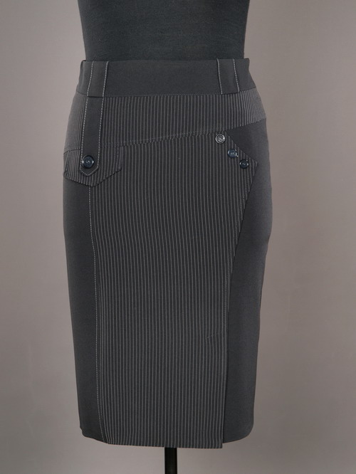 Элегантная женская юбка. Широкий пояс.По ноге шлица. Модная комбинация черного цвета с полоской.