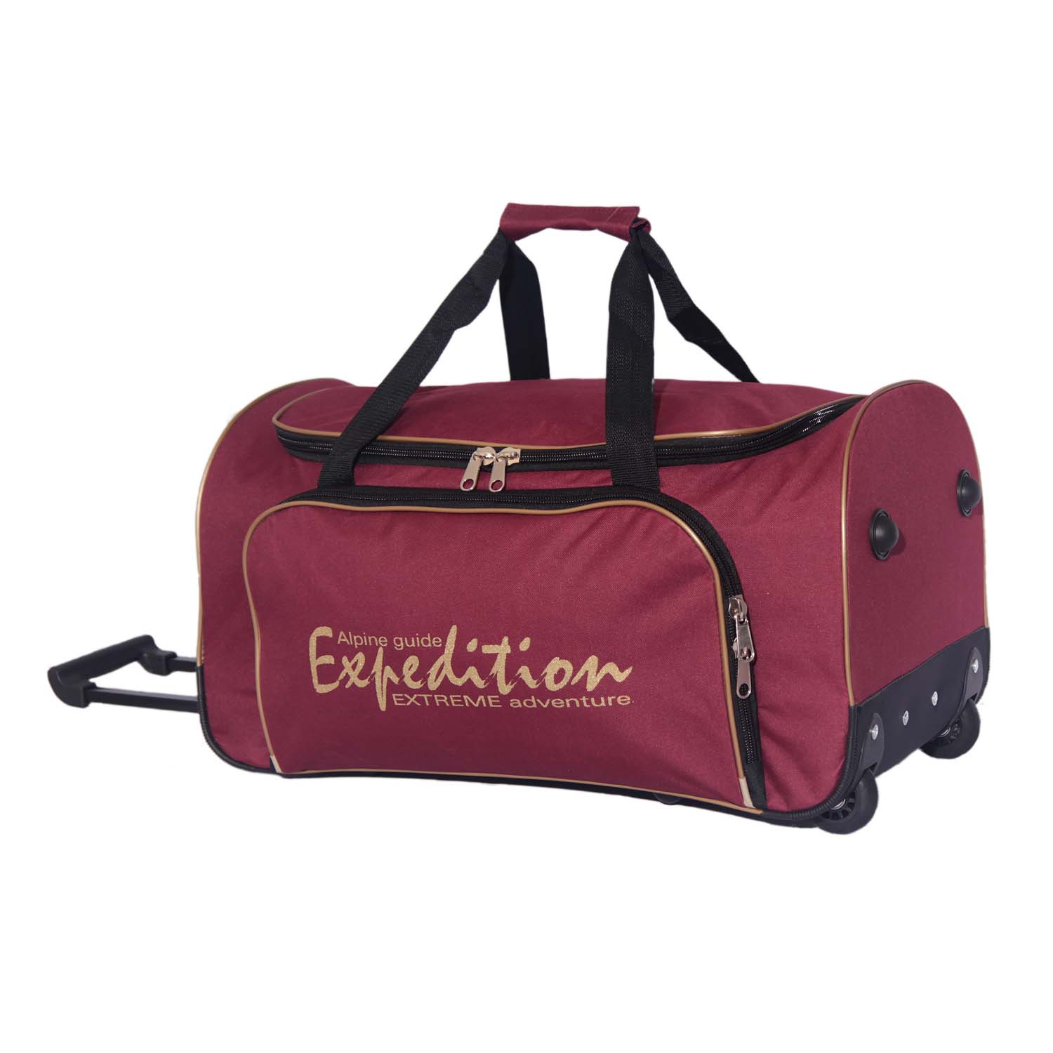 Большой основной отдел, внутренний карман на клапане из сетки, накладной карман на передней стенке, усиленная молния, ручкодержатель, жесткое дно, на котором установлены пукли-ножки, выдвигающаяся ручка, ударопрочные надежные колеса. Вид печати уточняйте у менеджера.